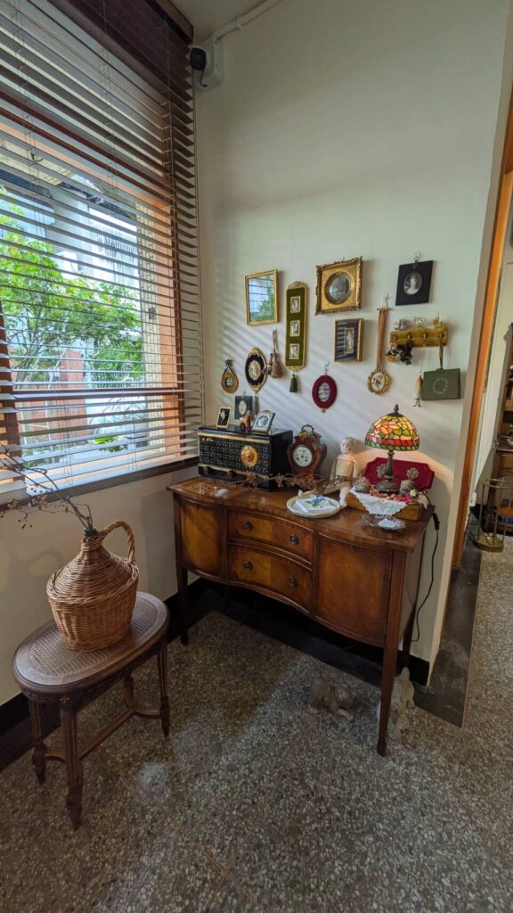 百歲堂內部裝潢有古董的櫃子及古董,靜靜地訴說歲月的美好。