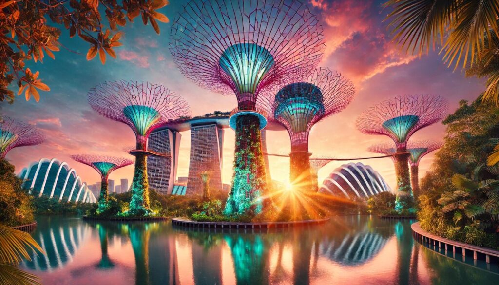一個未來派的園區,以其巨大的超級樹和花穹溫室著稱,是探索熱帶植物和創新園藝設計的絕佳場所。