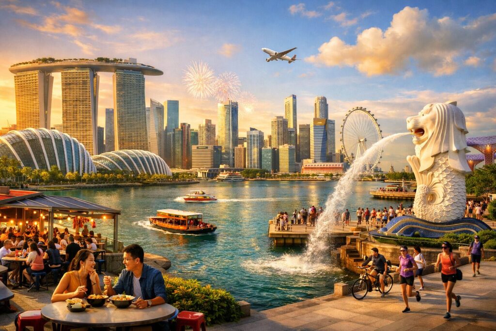 以魚尾獅雕像聞名,是新加坡的另一個標誌性景點,代表著城市的象徵。